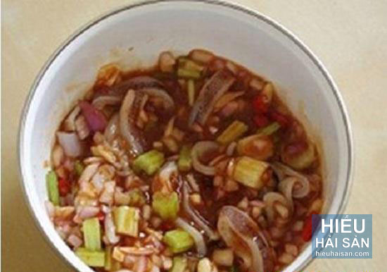 Mực ướp với hỗn hợp tương ở trên
