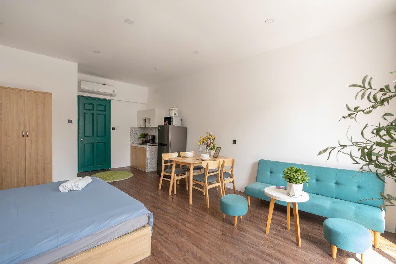 - Bếp riêng, cửa sổ lớn