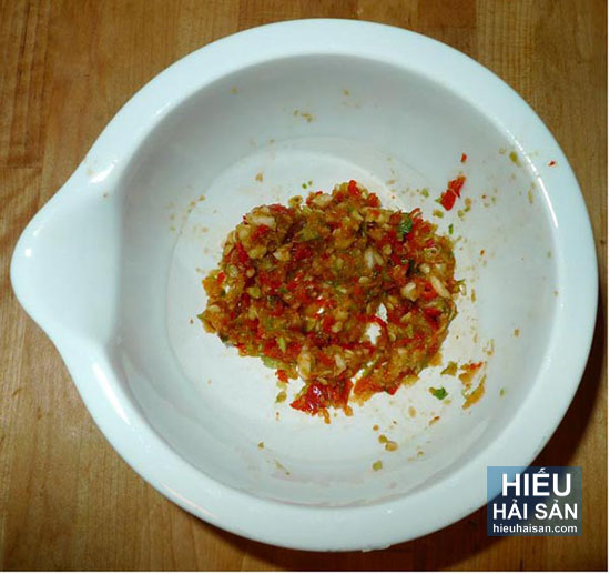 Rưới hỗn hợp tỏi ớt lên mực đã hấp chín